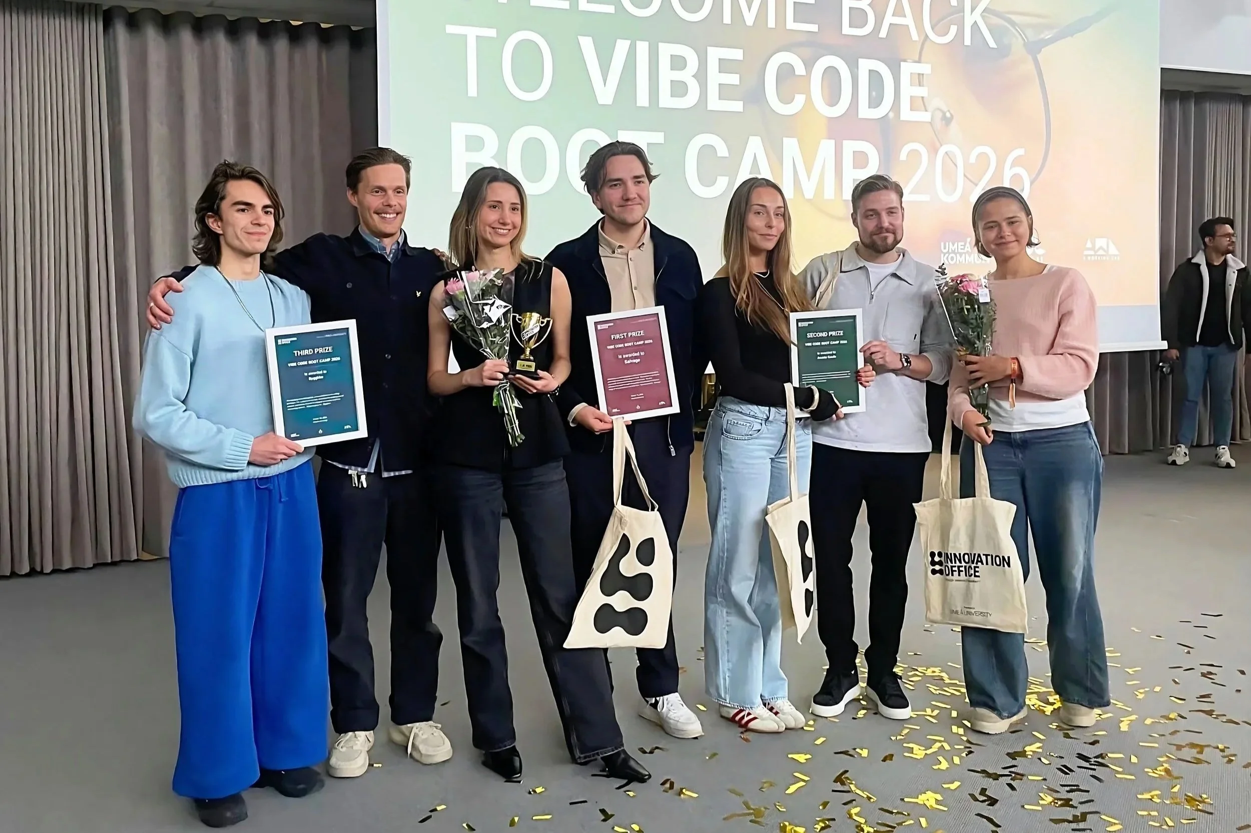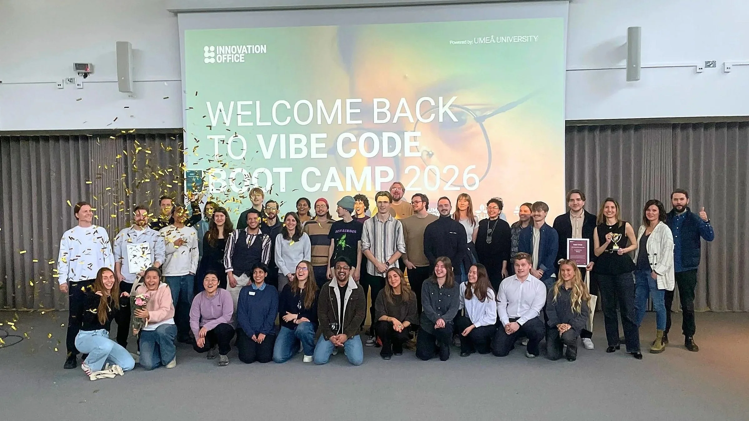 Vibe Code Boot Camp 2026 arrangerades av oss på Innovation Office powered by Umeå universitet och genomfördes med värdefullt stöd från Umeå kommun, Sveriges lantbruksuniversitet och A Working Lab.